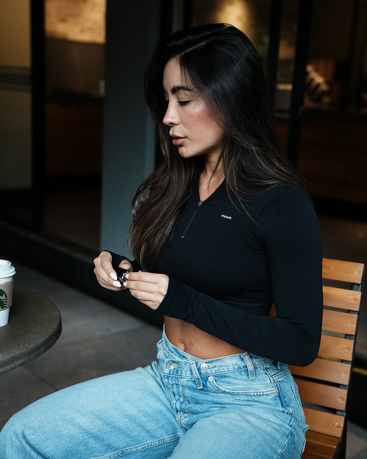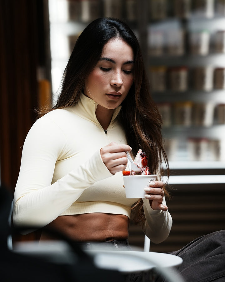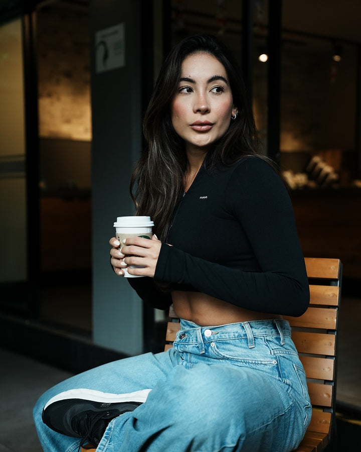 Diseñado para moverse contigo, este top de manga larga en tejido seamless se adapta al cuerpo como una segunda piel. Su diseño con cierre frontal sutil añade un toque deportivo y versátil, ideal tanto para entrenar como para armar un look urbano. El fit es ajustado, con pretina ancha que resalta la figura y brinda soporte sin apretar. Perfecto para combinar con leggings de tiro alto.